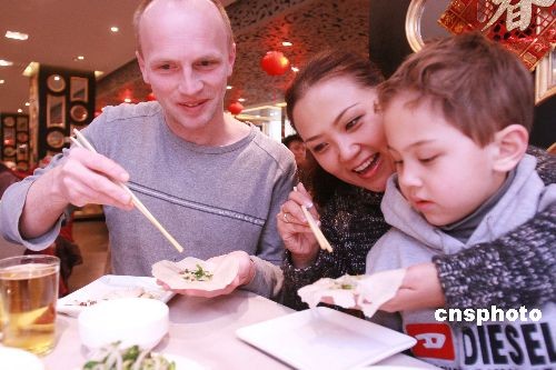 2月4日是中国农历新年的首个节气—立春,立春俗称“打春”,吃春饼是中国立春的主要习俗。按照老北京的民俗把吃春饼称为“咬春”,京城各家经营春饼的餐馆生意异常红火。中新社发 陈晓根 摄