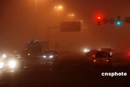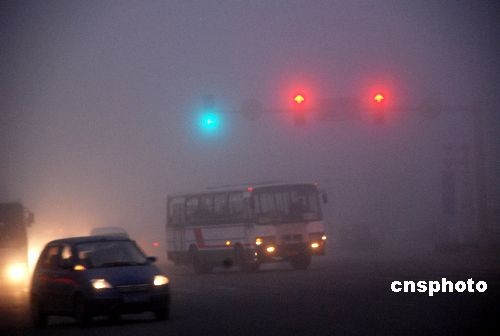 2月12日下午,大雾弥漫整个青岛市区,各种车辆打开灯光,在马路上小心翼翼行驶。进入春季后,大雾天气一直困扰青岛。中新社发 俞方平 摄