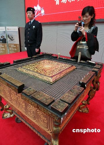 2月27日,北京产权交易所宣布,在2008北京奥运会开幕式上大放异彩的“击缶而歌”中的道具“缶”,将于3月8日进行拍卖,届时北交所将对1000个缶进行打包拍卖。该所将在本次缶的拍卖中,启用针对奥运资产处置需求量身定制的“金马甲”网络竞价系统,国内外的意向购买者均可在登记并交纳保证金后登陆“金马甲”网站,进行网络竞价。中新社发 张宇 摄