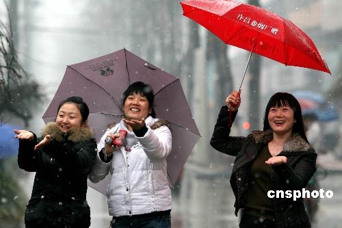 3月2日,河南省许昌市迎来一场春雪,行人冒雪走在街头。此次降雪对缓解当地旱情、改善土壤墒情和促进春耕生产都极为有利。中新社发 牛书培 摄