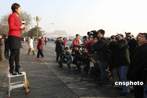 图:“两会”美女记者成摄影记者聚焦点——中新网