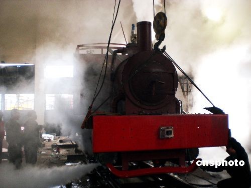 日前,按台湾第一辆蒸汽机车“腾云号”1:1比例仿制的火车头在杭州正式下线,这是中国近50年来首辆新造的蒸汽机车,预计在近期运达台湾并正式投入运营。据悉,“腾云号”蒸汽机车为1888年清朝政府台湾巡抚刘铭传向德国购入,1891年开始在东势火车站营运,1924年正式退休。中新社发 金斌 摄