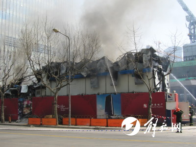 记者来到现场时,陆家嘴环路近花园石桥路路口已被单向封闭,4辆消防车正在出水灭火。着火的是新鸿基地产在建的国金中心二期写字楼工地工棚,整个构架已经严重变形,建材结构内不时可看见火苗蹿出。工人介绍,该工棚内除宿舍外,还有工地办公室。据了解,事发时工人已经到工地上班,大火最先从2楼左边第二个房间开始燃起,很快蔓延。目前,火灾原因仍在调查。谢磊 报道