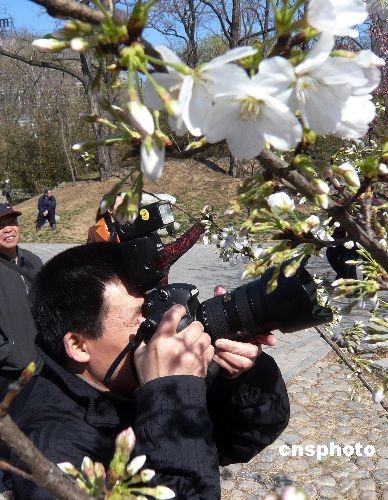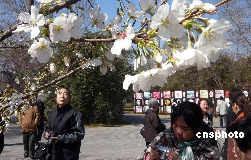 3月25日,北京玉渊潭公园第21届樱花节开幕,活动以“春到玉渊潭”为主题,可供观赏的樱花有20个品种近2000株,形成了“在水一方”、“樱棠春晓”等“樱花八景”。樱花园内以“诗情画意”为基调,搭建诗画屏风,结合赏花和咏春诗词、散文,营造浓郁的赏花情。中新社发 钱兴强 摄