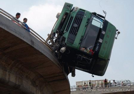 好险:卡车悬在30米高空