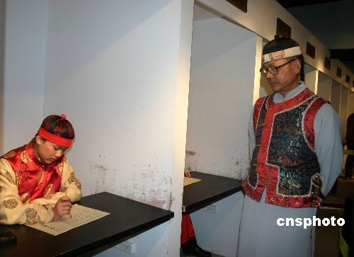 在全国历史文化名城、世界千年古县——四川阆中古镇学道街的清代四川乡试贡院,游客们可以亲身体验古代“乡试”的整个过程。作为古代科举高级别考试场所中最后的也是唯一较完整的遗存,阆中贡院成为展示科举文化的一处胜迹,吸引着国内外游客、学者专家和莘莘学子。中新社发 霍潺 摄