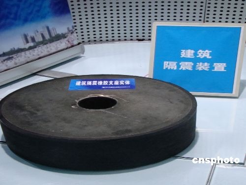 4月15日,四川省住房和城乡建设科技博览会在成都开幕。该博览会上,一系列最新的抗震秘密武器亮相。据了解,本届博览会为历届中规模最大的一次,旨在筛选出新技术和新产品,并应用到地震灾后恢复重建中,加快灾区发展。图为绵阳展馆展出的橡胶隔震支座,其作用是其橡胶支座能隔绝大部分地震,通过“以柔克刚”来保护房屋,可提高房屋抗震烈度1到2度。中新社发 王萌 摄