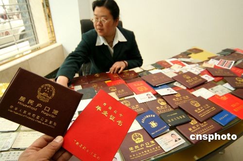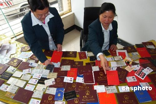 4月22日,河南省许昌市邮政局中心支局营业员整理从邮政信箱内发现的用于制作假证的部分个人原始证件。今年以来,河南省许昌市邮政局中心支局营业员经常在网点门口的邮政信箱里发现个人原始证件一类的原始资料,既无信封也无邮资,更无地址。邮局经过深入调查发现,原来,假证贩子利用邮政的良好信誉,让需要办假证者把原始资料放入指定的邮筒,并以“邮局内有熟人”为幌子,骗取办假证者信任。然后,假证贩子再以假证已制作完毕、需先付款再取货的名义,提供一个银行账号并让市民往账户里存钱。办假证者的原始资料还在邮筒内无人问津等钱财到手以后,假证贩子立即逃之夭夭, 被骗的市民因有“难言之隐”而只能忍气吞声。河南许昌邮政局提醒市民谨防不法分子利用上述手段诈骗钱财。邮政局相关负责人说,邮筒属于公用设施受法律保护假证贩子是不可能从邮筒中取走任何信件或资料的,市民不要听信不法分子的谎言。办理假证和持有假证均属违法行为,邮政部门将配合有关部门严厉打击此类违法行为。中新社发 牛书培 摄