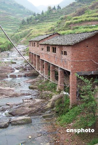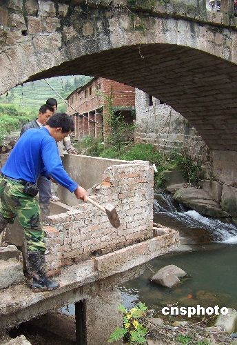 近日,一个《关于重庆市云阳县红狮镇永福村饮用水源污染报告》的帖子在网络论坛热炒,引起网民广泛关注。2009年4月21日,云阳县依法对反映的养猪场进行拆除和消毒。大桥下,昔日臭气熏天、浑浊不堪的溪水变得清亮起来。根据国家有关规定,饮用水源周边100米以内属一级保护区,在一级保护区内,不能有生活区及其他建筑物。而随着生猪的走俏,该村唯一的饮用水源八大丘溪两侧则陆续建起多家养猪场,养猪场的污水没有任何净化措施,直排进溪沟,对下游周边2000多人的饮水造成污染。该县对业主下达了整改通知,明确告知养猪场必须建设生化处理池,污水和垃圾不准直接排到河沟。中新社发 光之影 摄
