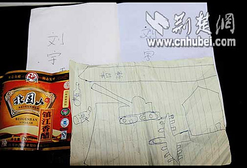 昨日(21),洪山区(武汉)南湖工商所接到举报,在该区红旗村一临时搭建的民房中查获一个制假作坊,收缴大量假名牌醋等。据查,作坊老板刘某是安陆人,今年2月起与妻子在此租房,以每袋2毛钱购进散装醋精,兑水炮制“名醋”,低价卖给周边副食店和小超市。执法人员现场发现一幅笔法幼稚的漫画:一辆坦克的大炮直指2瓶“名醋”。刘某的妻子称,这是她11岁的儿子为讽刺他们制假而作。(张乐克 徐永峰 章敏)