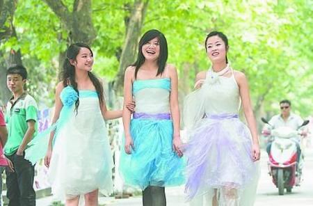 昨日中午,成都理工大学第四教学楼旁摆起了展台,七名身着用蓝、黑、白相间的塑料薄膜做成的“塑料时装”的女学生登场,引来了阵阵掌声。据介绍,这些学生所穿的“塑料时装”全部采用日常生活中常见的塑料,通过他们自己独立设计成衣服,向现场的观众宣传环保,号召师生们尽量采用环保制品,爱护我们共同的家园。(李斌 黄海英 李启明 孙立新)