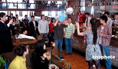 2009年4月27日,湖南岳阳籍在京青年联谊会在北京举办,精彩的游戏互动为现场年轻人增进友谊、交流沟通增添了轻松气氛。现今青年交友联谊活动受到越来越多的都市年轻人欢迎。中新社发 冰寒 摄