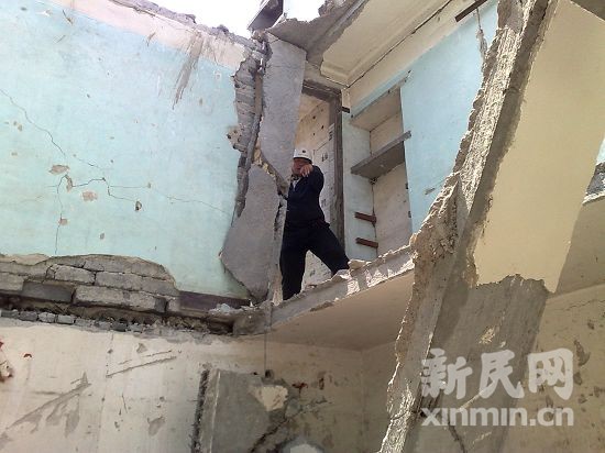 发生事故的是东宝兴路青云路口一幢正在拆除的民房。据了解,事发当时四名工人正在该楼第三层拆除隔墙,突然脚下的水泥楼板发生整体断裂,四人随坍塌的水泥楼板坠至楼底,其中二人身体被挤压在断楼板间动弹不得,伤者的工友随即向110报警求救。