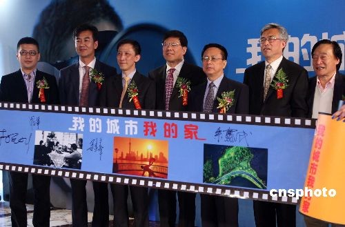4月27日,由中国房地产业协会、中国摄影家协会、新浪网等联合主办的“我的城市我的家”中国摄影大展在北京启动,新浪乐居总经理罗军(左三)等出席启动仪式。本次摄影展主题为“记录珍贵瞬间,铸造和谐永恒”,将通过照片形式,回溯60年间城市和人居建设过程中的精彩瞬间,展现新中国成立60周年的成就。中新社发 张宇 摄