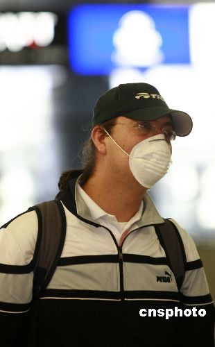 4月30日清晨,墨西哥航空公司AM零九八航班抵达上海浦东机场,航班共有一百八十九人,包括一百七十六名旅客和十三名机组人员。上海出入境检验检疫局立即启动口岸检验检疫措施,工作人员登上停靠远机位的飞机为旅客一一进行医学巡查,并对机上的行李和飞机外表实施严格消毒。中新社发 陈静 摄