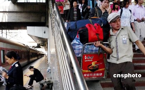 4月30日,为了满足“五一”假期旅客出行的需要,北京火车西客站加开临客列车,分别开往涞源、石家庄、邯郸、西安、南昌、武昌等方向。中新社发 钱兴强 摄