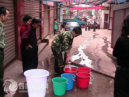 男女老少纷纷拿起大盆、小盆、水桶争先恐后向消防车赶来。“大家不要挤,按次序排队”,当消防官兵打开出水阀门,白花花的自来水流进群众拿着的大盆、小盆,水桶时,群众脸上顷刻洋溢着喜悦的微笑。