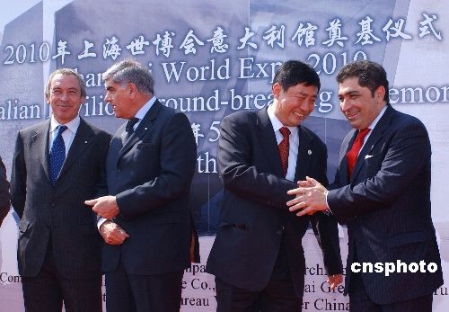 5月8日,2010年上海世博会意大利国家馆奠基。据介绍,上海世博会意大利国家馆的主题是“理想之城,人之城”。中新社发 张亨伟 摄