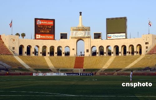 当地时间五月十四日,为筹措资金缓解日益严重的加州财政危机,加州州长施瓦辛格提议出售洛杉矶纪念体育场等著名地标建筑。洛杉矶纪念体育场是世界上唯一举办过两届奥运会的露天体育场。中国百年奥运历程中的两个重要历史事件发生在这里:1932年中国运动员首次参加奥运比赛;1984年,中国运动员首次实现奥运金牌零的突破。中新社发 张炜 摄