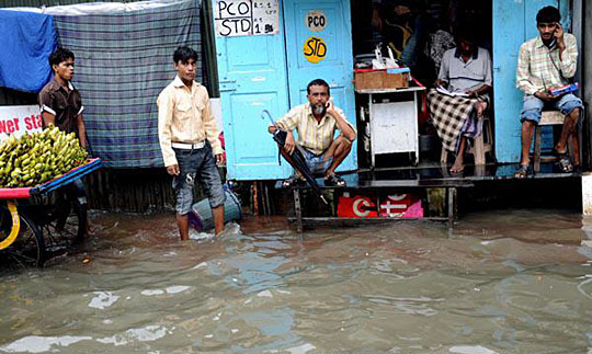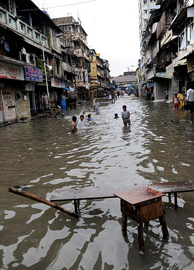 7月14日,正值雨季的印度孟买因遭连夜暴雨袭击,一些道路被雨水淹没,造成部分居民受灾,交通受阻。