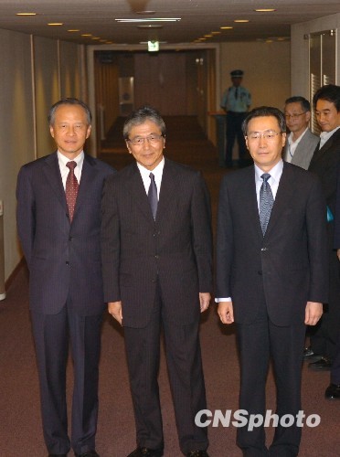 9月7日下午,中国外交部副部长武大伟抵达东京,开始对日为期四天的访问。日本正值政权交替的敏感之时,武大伟此行将与朝野各政党及政府官员进行广泛接触。此行因此格外受外界关注。图为武大伟(右一)抵日后立即在崔天凯大使(左一)的陪同下,前往外务省,与该省事务次官薮中三十二进行会谈。中新社发 朱沿华 摄