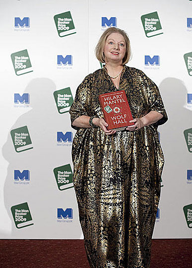 10月6日,在英国伦敦市政厅,获得2009年度英国布克文学奖的英国女作家希拉里·曼特尔手举自己的获奖作品《狼厅》。