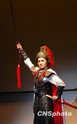 11月11日晚,由中国人民解放军总政歌舞团精心打造的中国大型歌剧《木兰诗篇》在日本东京的日本学习院大学进行了首演。图为中国青年歌唱家雷佳饰演的花木兰。中新社发 朱沿华 摄