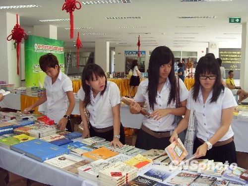 泰国普吉孔子学院十一月十六日举办为期一周的汉语图书展。这次展览是在中国国家汉办的大力支持下进行的。国家汉办为普吉孔子学院提供了数千册图书,包括适合各个层次的汉语教材、辅导书、考试用书、中国文化、中国国情等,还提供了电影、歌曲、百科知识、课程辅导等多种电子产品和文化用品。前来参观的泰国师生对展品表现出极大的兴趣,对于散发着墨香的图书爱不释手,不断提出关于中国文化的各种问题,特别在精美绝伦的中国结等文化用品展台前流连忘返。中新社发 顾时宏 摄