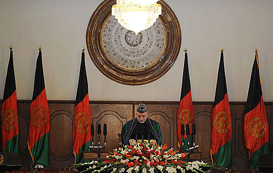 11月19日,在阿富汗首都喀布尔的总统府,阿富汗总统卡尔扎伊宣誓就职,开始其第二个5年任期。