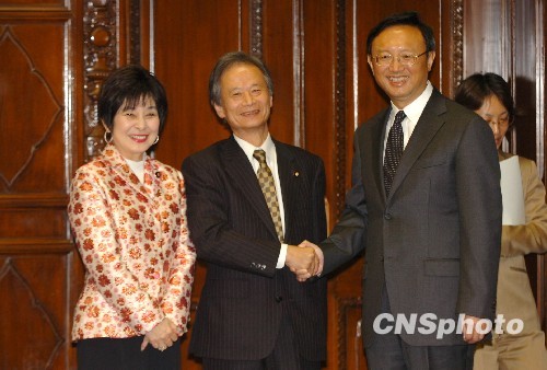 11月19日下午,正在日本进行正式访问的中国外交部长杨洁篪在东京会见了日本参议院议长江田五月(中)和副议长山东昭子。中新社发 朱沿华 摄