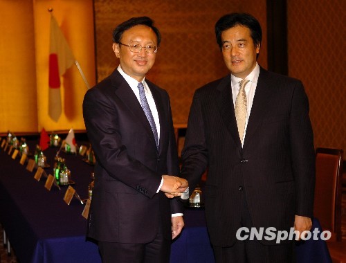 11月19日晚间,正在日本进行访问的中国外长杨洁篪与日本外相冈田克也在东京举行了会谈。中新社发 朱沿华 摄