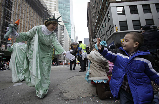 11月26日,2009梅西感恩节花车与气球大游行在纽约曼哈顿举行。梅西感恩节大游行始于1924年,是全美最盛大的感恩节庆典,每年都会吸引数百万人沿途观看。