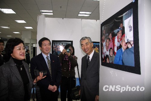 12月7日,《纪念关西日中交流恳谈会在湘捐资助学15周年摄影作品展》在湖南长沙开幕。摄影展展出了关西日中交流恳谈会在湘交流15年中,日本友人南岛顺子拍摄的湘西孩子们学习、生活照片。统计显示,15年来,关西日中交流恳谈会在湖南的捐赠金额近600万人民币,援助学生近5000人次。图为南岛顺子(左一)为参观者讲述照片背后的故事。中新社发 邓霞 摄