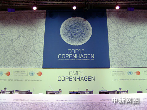 《联合国气候变化框架公约》第15次缔约方会议暨《京都议定书》第5次缔约方会议于12月7日至18日在丹麦首都哥本哈根召开,这一会议也被称为哥本哈根联合国气候变化大会。图为位于贝拉中心的全会会场主席台。李洋 摄