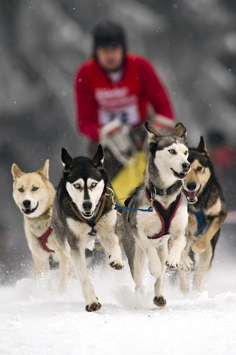 1月24日,德国中部举办了一场盛大的狗拉雪橇大赛,约有54支队伍超过200条雪撬犬参加了大赛。图片来源:中国新闻网
