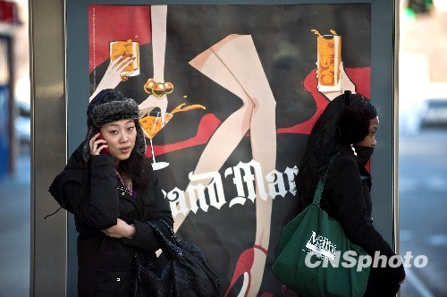 近日美国东部地区遭遇特大暴风雪。据气象部门预报,包括华盛顿在内的美国中大西洋及东北部地区9日将再次迎来大范围降雪。2月8日,纽约最低温度达零下5度。图为在曼哈顿街头迎着寒风等候公交车的美女。中新社发 陈钢 摄