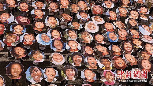 5月4日下午14:50(北京时间13:50),日本“幸福计划”组织在上海世博公园和东京涩谷创造公园,分别举行百张笑脸迎世博的活动。“幸福计划”是日本一家公益组织,发起人水谷孝次致力于拍摄全世界孩子的笑脸,并制作成笑脸伞。在有特殊意义的时间和地点,以志愿者参与的方式,共同“绽放”。旨在希望人们珍惜生活中的美好。“幸福计划”曾参与北京奥运会开幕式。图为“幸福计划”在东京涩谷创造公园,为庆祝上海世博会开幕,而举行的百张笑脸迎世博的活动。中新社发 孙冉 摄
