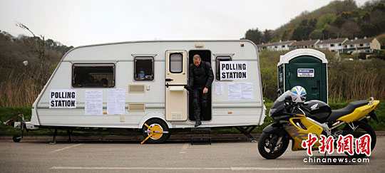 当地时间5月6日7时(北京时间14时),英国大选投票开始。英国选民们在西顿的大篷车内投票。
