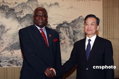 5月26日,中国国务院总理温家宝在北京中南海紫光阁会见塞拉利昂共和国总统科罗马。中新社发 盛佳鹏 摄