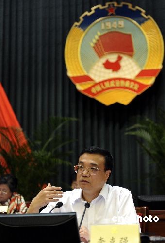 6月16日,政协第十一届全国委员会常务委员会第六次会议在北京举行,中共中央政治局常委、国务院副总理李克强作关于“着力扩大国内需求,保持经济平稳较快发展”和“保障和改善民生,促进社会和谐”问题的报告。 中新社发 廖攀 摄
