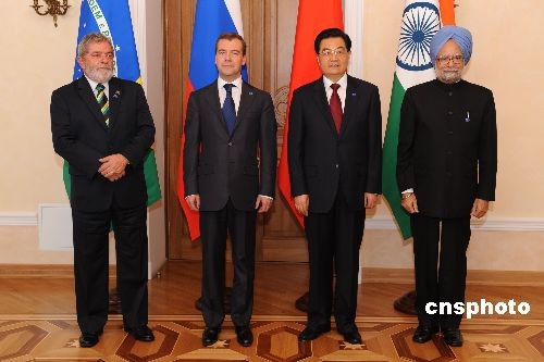 中国、巴西、俄罗斯、印度“金砖四国”领导人会晤十六日在俄罗斯叶卡捷琳堡举行,中国国家主席胡锦涛、俄罗斯总统梅德韦杰夫、巴西总统卢拉、印度总理辛格出席。