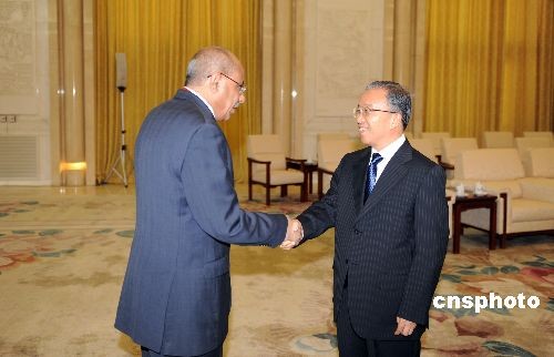 6月23日,国务委员戴秉国会见阿方主席马卜鲁克等参加会议的阿方代表。当日,中国—阿拉伯国家合作论坛第六次高官会在北京开幕。中新社发 廖攀 摄
