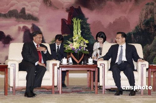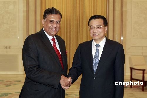 7月3日,中国国务院副总理李克强在北京人民大会堂会见斯里兰卡外长博戈拉加马。中新社发 盛佳鹏 摄