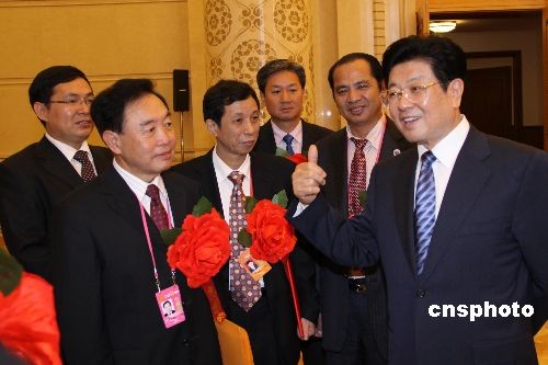 7月14日,中国全国人大常委会副委员长王兆国在北京人民大会堂接见全国“侨界十杰”并与他们亲切交谈。中新社发 史利 摄