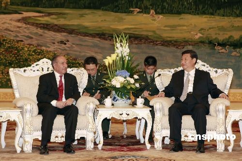 7月16日,中国国家副主席习近平在北京人民大会堂会见巴基斯坦国防部长乔杜里·艾哈迈德·穆赫塔尔。中新社发 盛佳鹏 摄