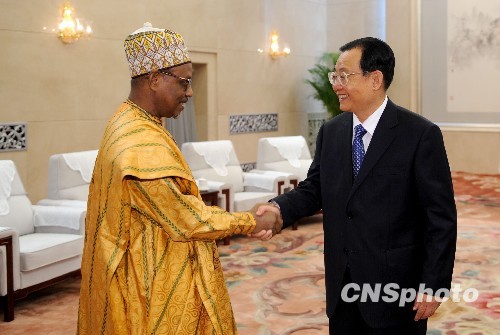 8月28日,全国政协副主席、中国经济社会理事会主席王刚在北京会见了尼日尔经济、社会和文化理事会主席谢富·阿马杜一行。中新社发 廖攀 摄