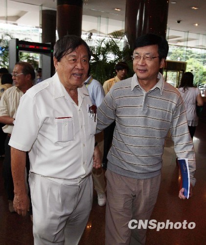 9月18日,世界华文传媒领军人物纷纷抵达上海,准备参加19日在此间开幕的第五届世界华文传媒论坛。图为中国新闻社社长刘北宪(右)与马来西亚世华媒体集团主席张晓卿亲切会面。中新社发 任海霞 摄