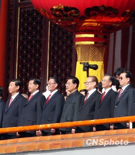 10月1日,中华人民共和国成立60周年庆祝大会在北京天安门广场隆重举行,胡锦涛等党和国家领导人出席。中新社发 宋吉河 摄