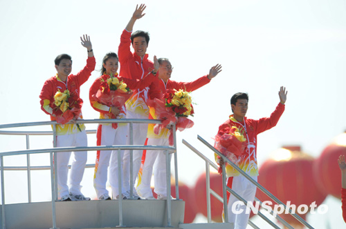 图:刘翔、李宁等体育明星亮相游行彩车——中新网