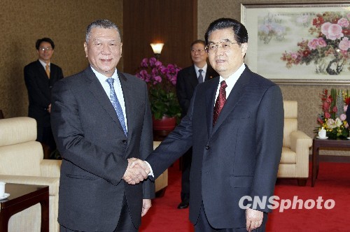 12月19日,国家主席胡锦涛在澳门下榻的宾馆会见澳门特别行政区行政长官何厚铧。中新社发 GCS 摄